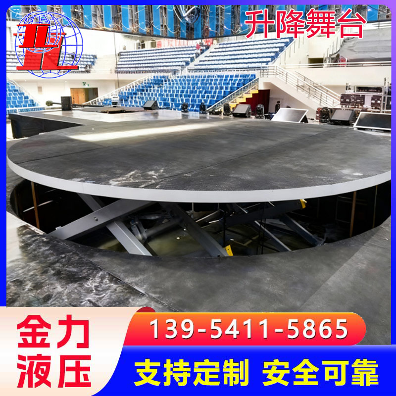 液压升降舞台也叫舞台升降机专门安装在舞台上,用于舞台升降及旋转叫舞台升降机。有升降、旋转、倾斜等多种功能,控制采用自锁、互锁、行程开关、机械限位、液压防爆等保护措施。